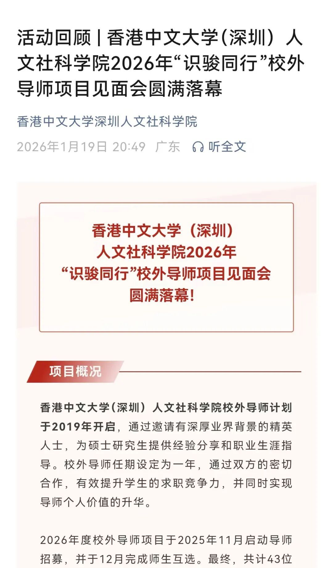 识骏同行亚洲Av无码乱码国产精000,博文约礼。近日,香港中文大学(深圳)人文社科学院举办校外导师项目见面会。知识空间创始人黄伟先生获聘为校外导师,参与该院计算社会科学硕士项目的学生辅导,帮助学生构建职业认知,提升实践竞争力,助力这所世界名校深化产教融合、优化育人体系。